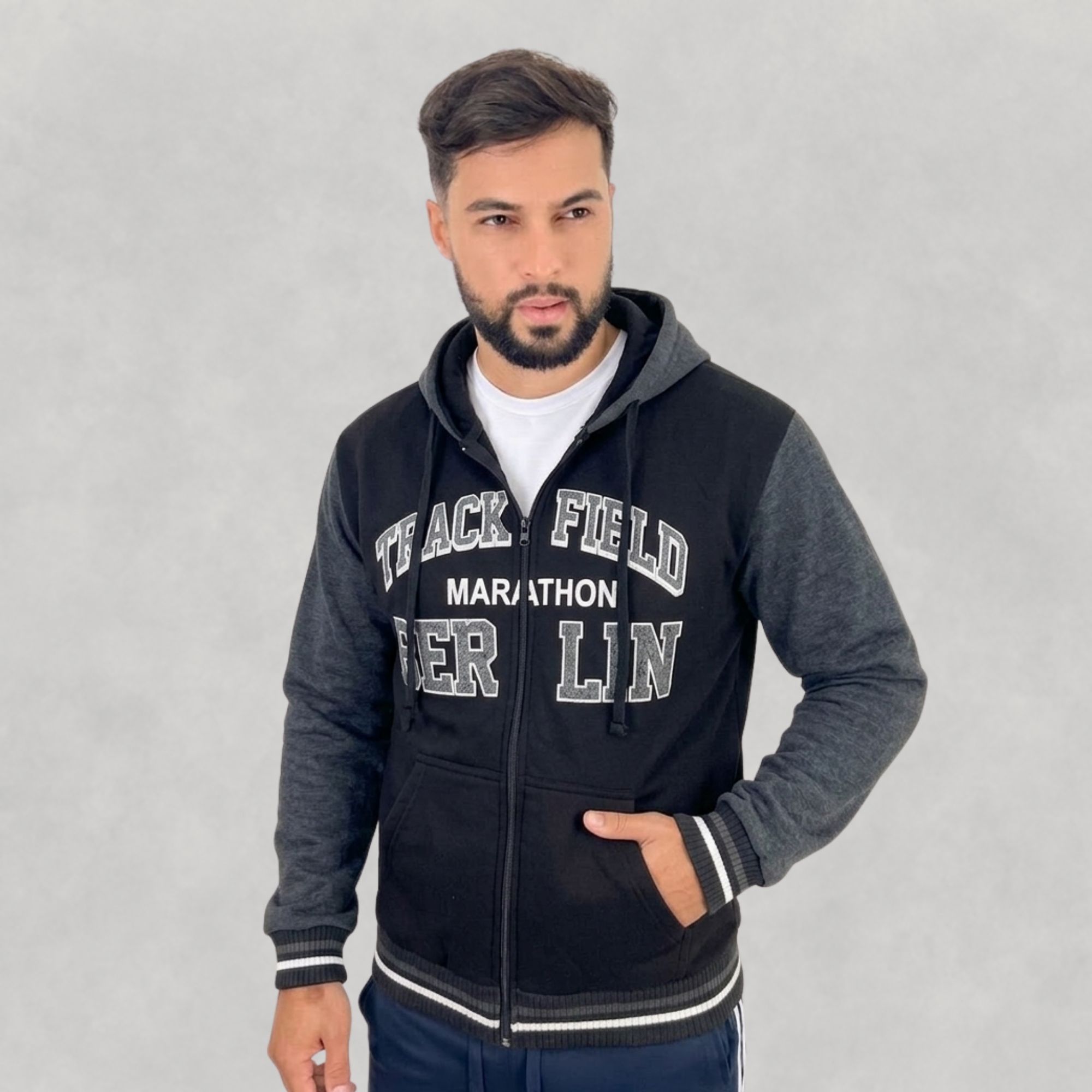 É um casaco ideal para o dia a dia, trabalho, passeio ou momentos de lazer. O modelo conta com zíper frontal, capuz ajustável e bolso canguru, garantindo praticidade e um visual moderno.